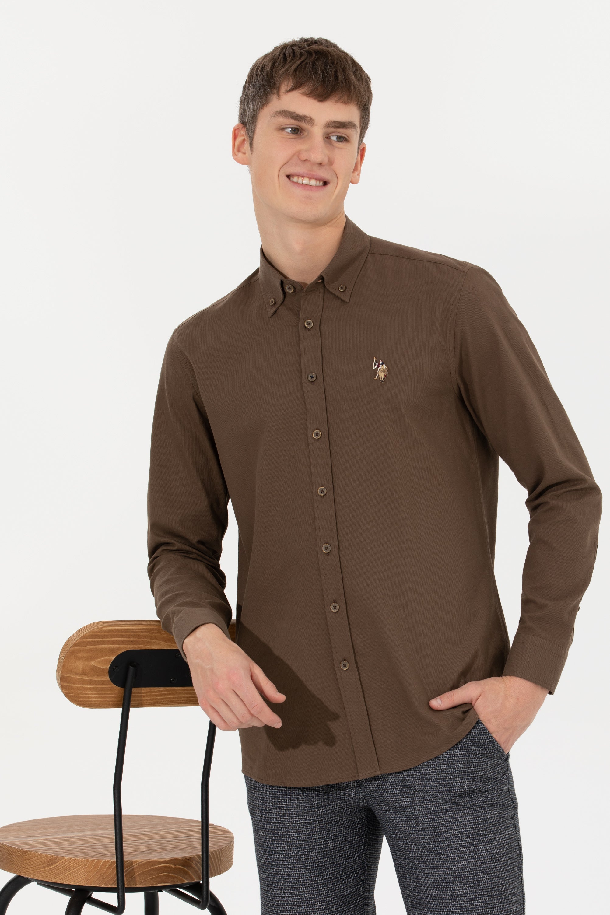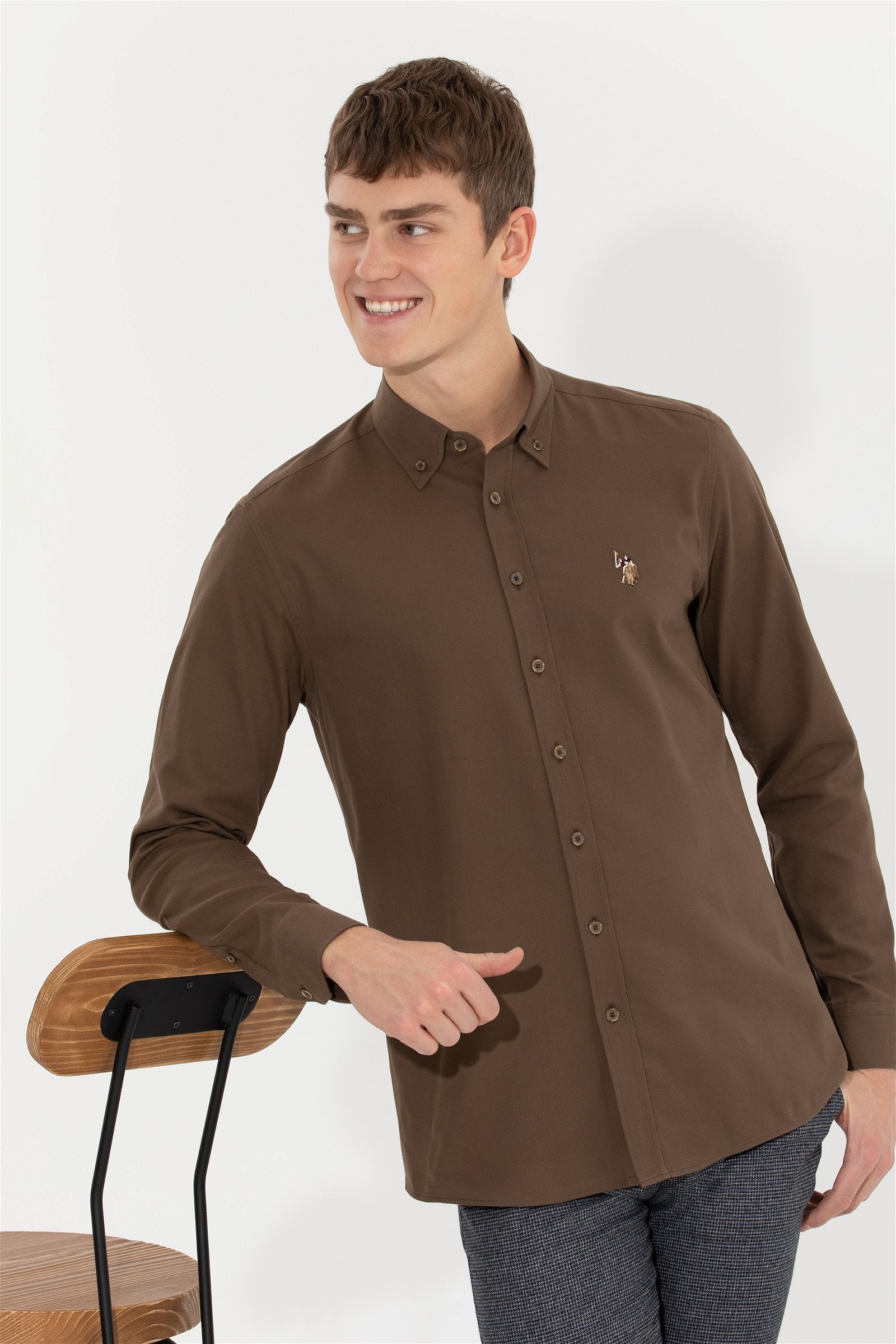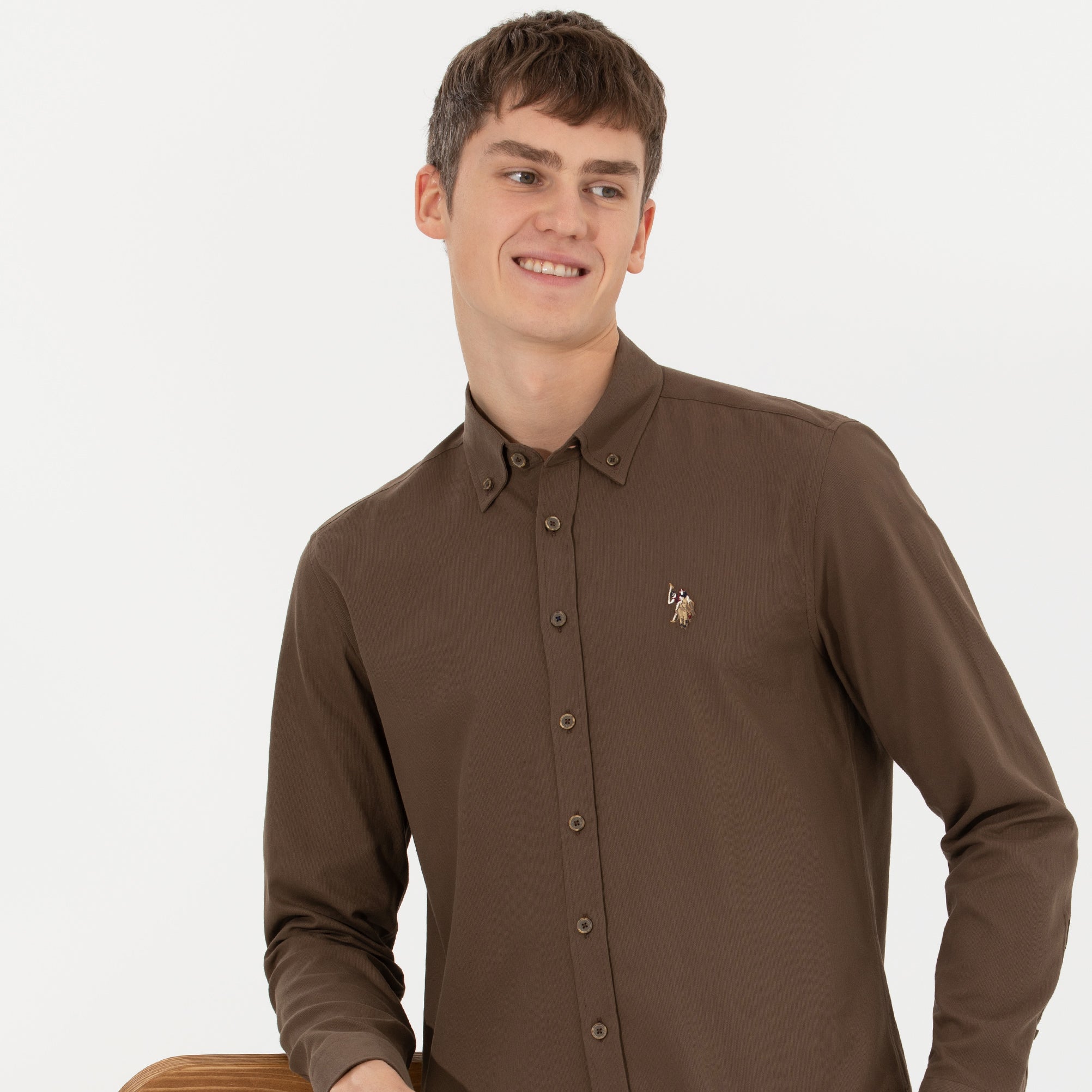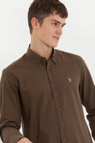 Chemise coconut avec col à revers et manches longues avec poignets boutonnés. Fermeture avant par boutons.