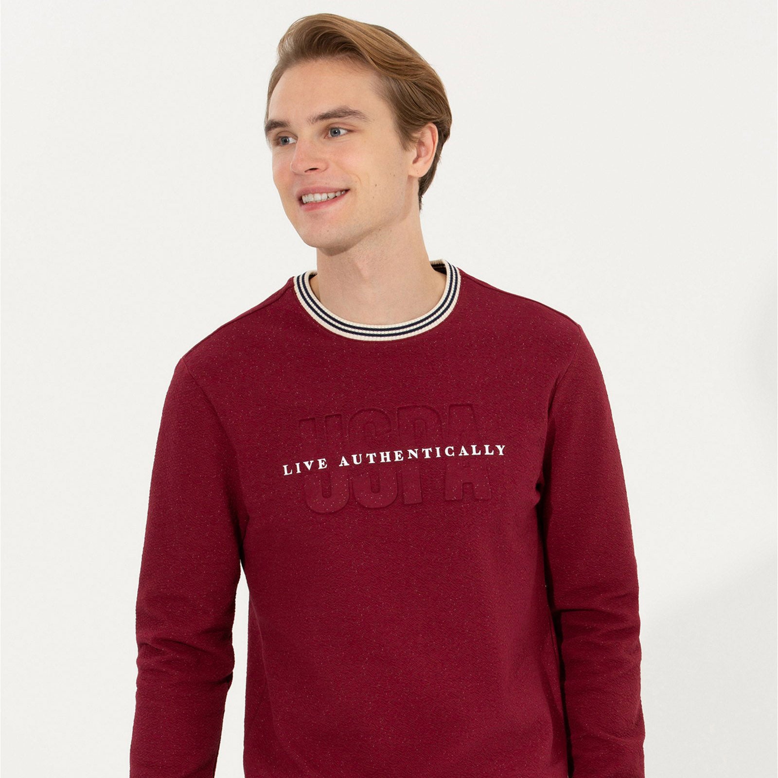Sweat rouge. Col rond et manches longues.