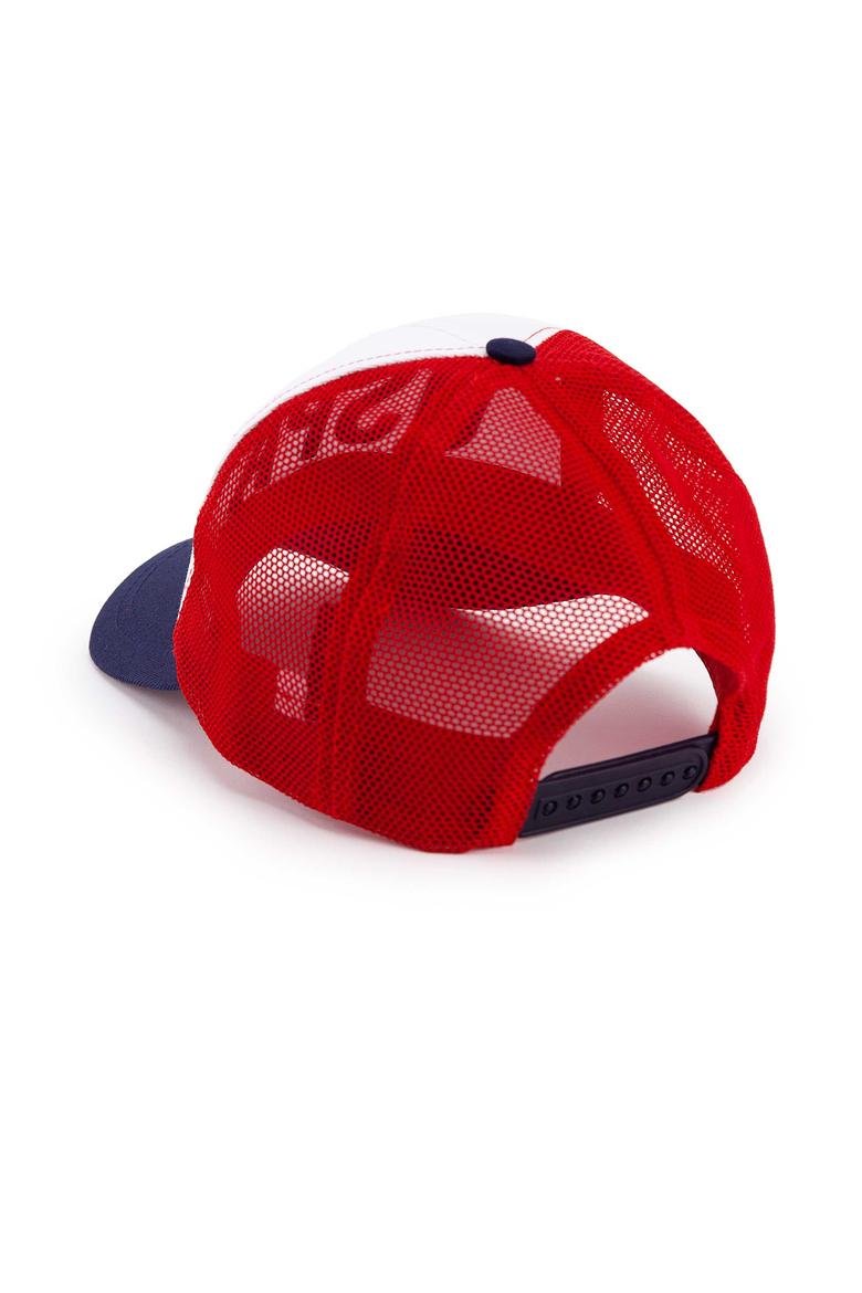 Casquette à visière. Détail brodé bimatière en contraste sur le devant. Réglable à l'arrière.
