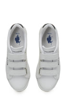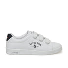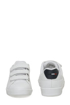 Baskets blanche. Matière en cuir. Fermeture par bride auto-agrippante sur l'avant. Semelle légèrement épaisse.