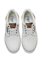 Baskets blanche. Tige unie. Laçage à six Å“illets. Semelle légèrement épaisse.
